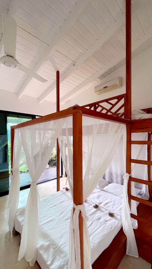 The roof top is an amazing space to contemplate the view on the palmtrees, the beach, which can be seen through the trees, the mountains of Cozon, and of course the stars at night! If you are a Yogi, that’s your space to breath and balance overlooking the garden.